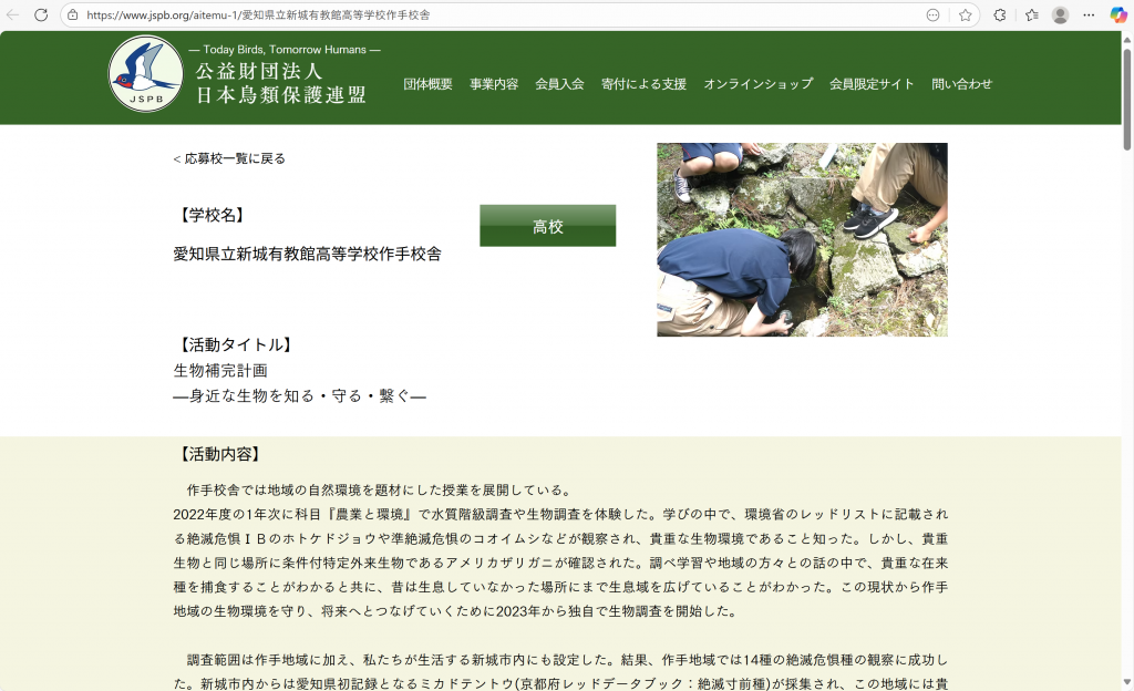 全国野生生物保護活動発表大会 愛知県立新城有教館高等学校作手校舎