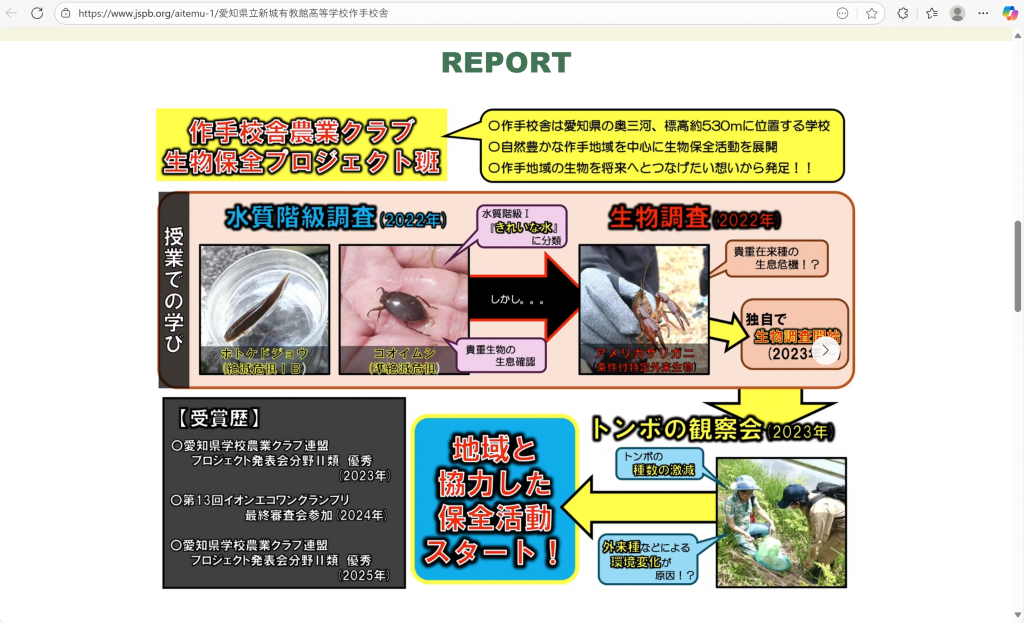 作手校舎農業クラブ生物保全プロジェクト班の活動を全国野生生物保護活動発表大会にエントリーしました!