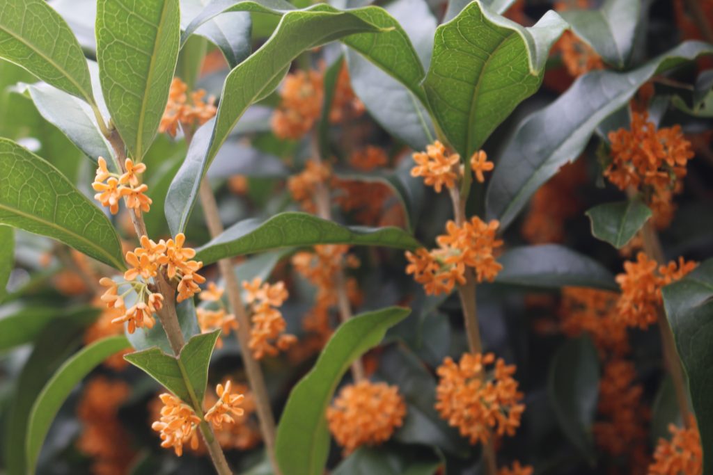 お知らせ/学校生活 秋の訪れを感じます🌰🌾📖 2025年10月3日 テスト最終日、教室を掃除していると、ふわっと金木犀の良い香りが漂ってきました。 金木犀は「1本の木で100m先まで香る」と言われるほど、強い香りを放つそうです。 花の見ごろは3~4日とかなり短く、すぐに散ってしまうため、はかない美しさの象徴とされています。 谷崎潤一郎著『細雪』で庭園で金木犀が香る情景が描かれるなど、多くの文学作品に登場する植物となっています。