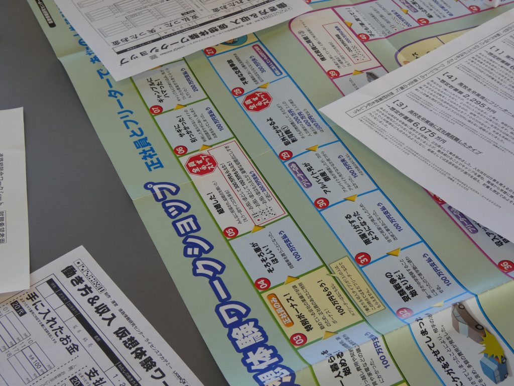 2年生/お知らせ 進路説明会実施!!✍ 2025年10月23日 修学旅行が明けた今週、さっそく2年生は進路説明会を実施しました! 前半は人生ゲームようなキットを用いて「フリーターと正社員で生涯収支がどれだけ違うのか」というテーマで疑似体験をしました。 後半は進学組と就職組に分かれて、企業の方や大学の方から説明を受けました。