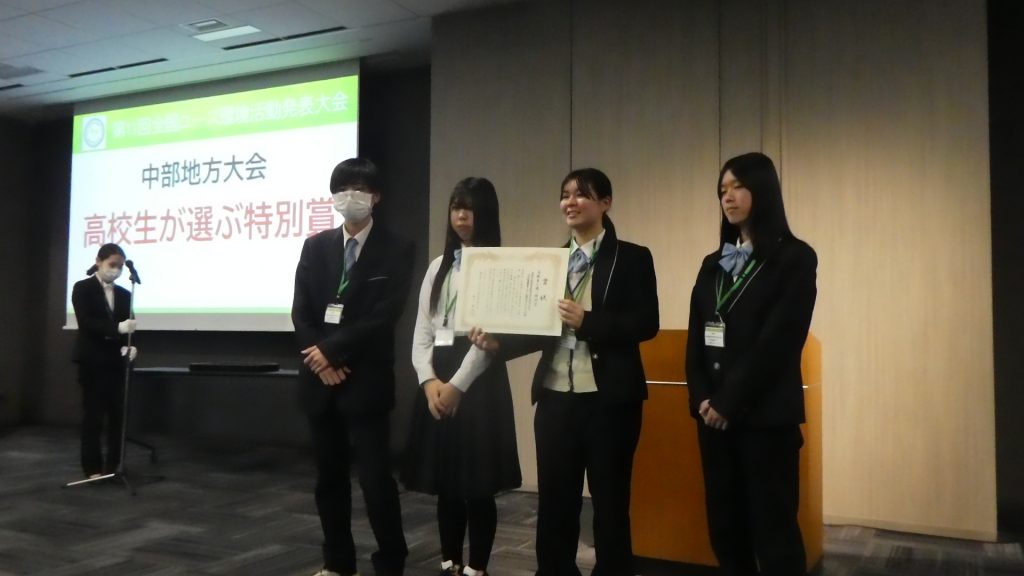 11月29日(土)に行われた全国ユース中部地区大会にて、「高校生が選ぶ特別賞」を受賞しました!