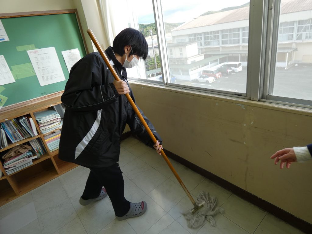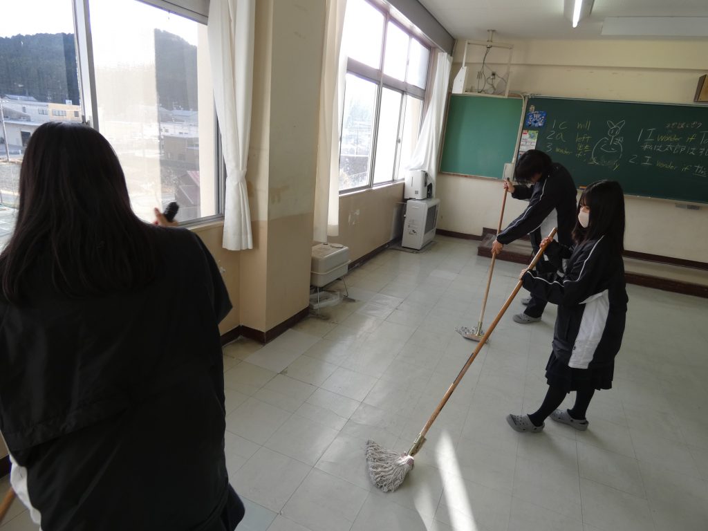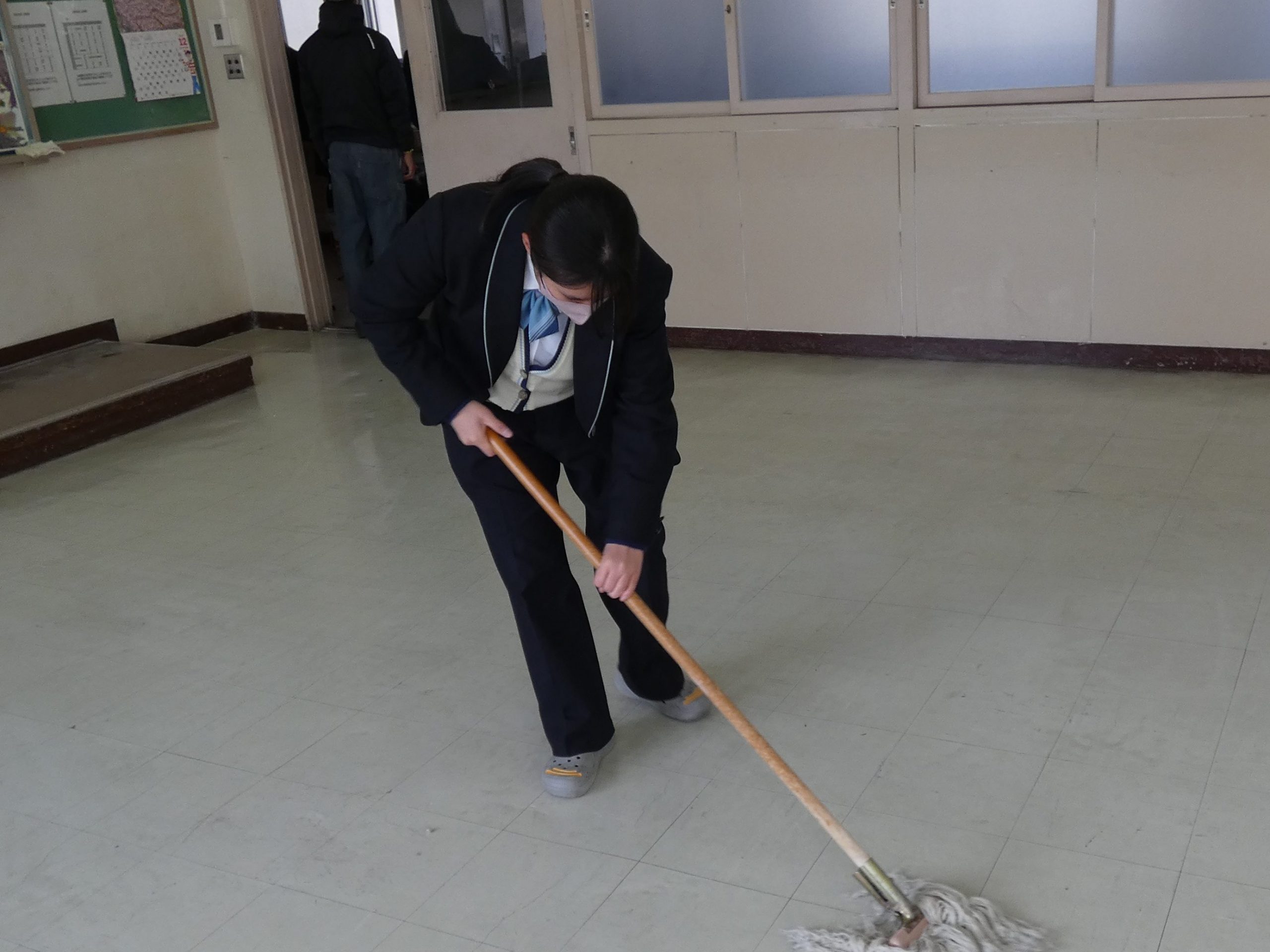 さて、そんなパワフル作校生とともに、毎年恒例の床みがきを行いました!教室の机やイスを全て廊下に運び、キレイに掃き掃除をしてからモップで床を磨き上げます!✨