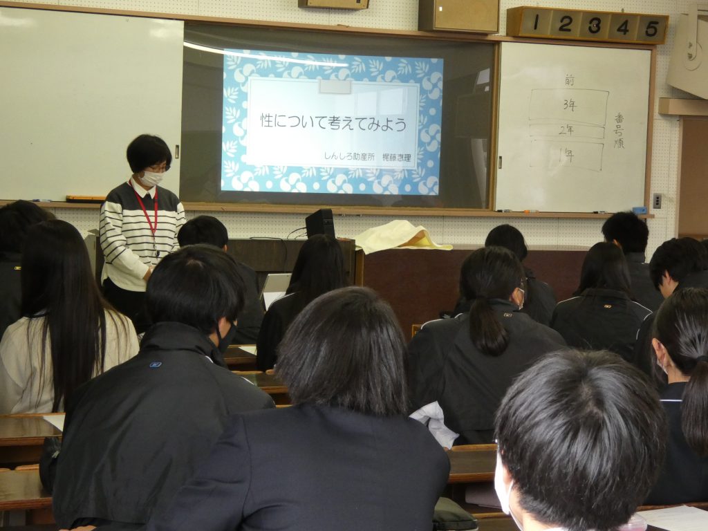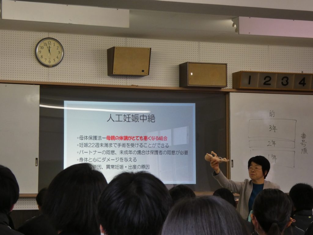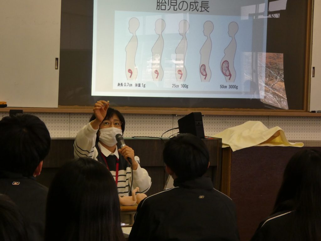 お知らせ/学校生活 保健講話を行いました 2025年12月9日 12月8日(月)に保健講話を行いました。今回は、助産師の方をお招きし、性についてご指導いただきました。 妊娠に関すること、胎児の成長過程、身体のことなど、大人になるうえで知っておくべき内容が多く、生徒たちは真剣に話を聞いていました。