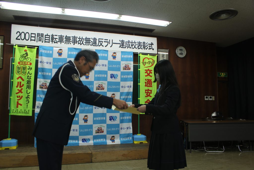 1月23日(金)新城警察署より、200日間自転車無事故無違反の表彰をしていただきました。