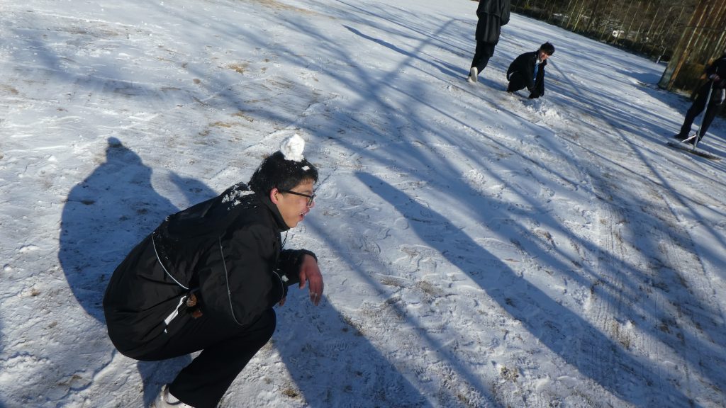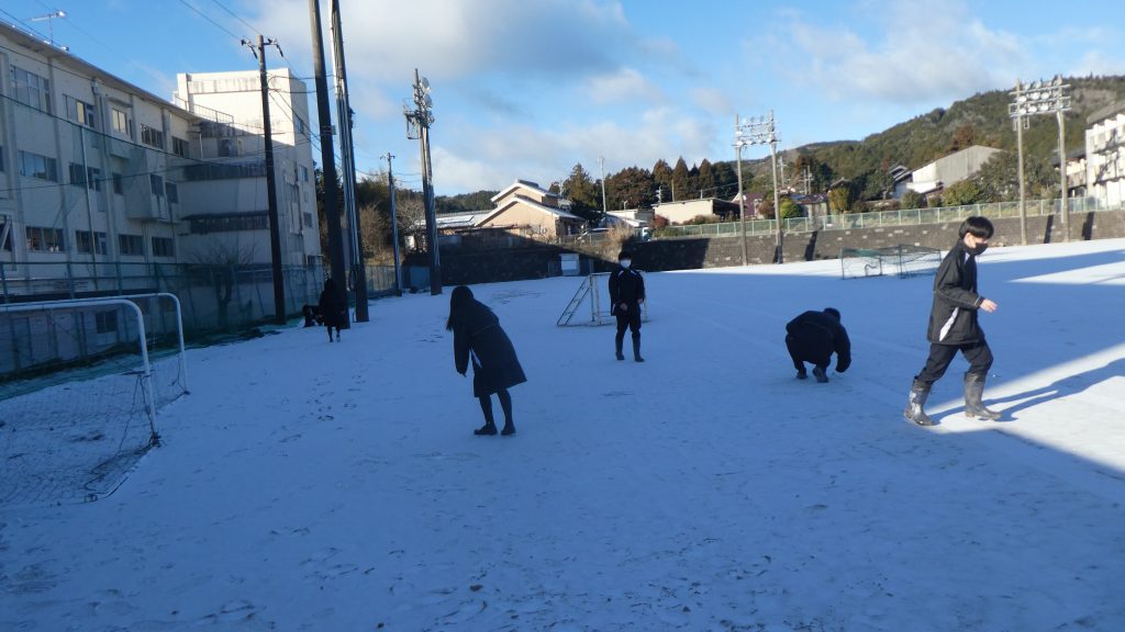 元気いっぱいな生徒たちはグラウンドで雪合戦的なことをしており、楽しんでいました。
